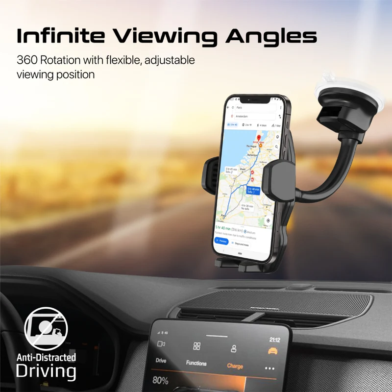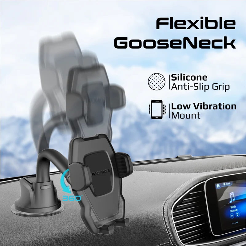 Dashmount provides you with flexible, adjustable viewing whether it may be horizontal, vertical, or any angle. The suction cup is stronger than ordinary suction holders and adopts a two-step locking mechanism. The gooseneck design allows you to adjust this mount freely.
