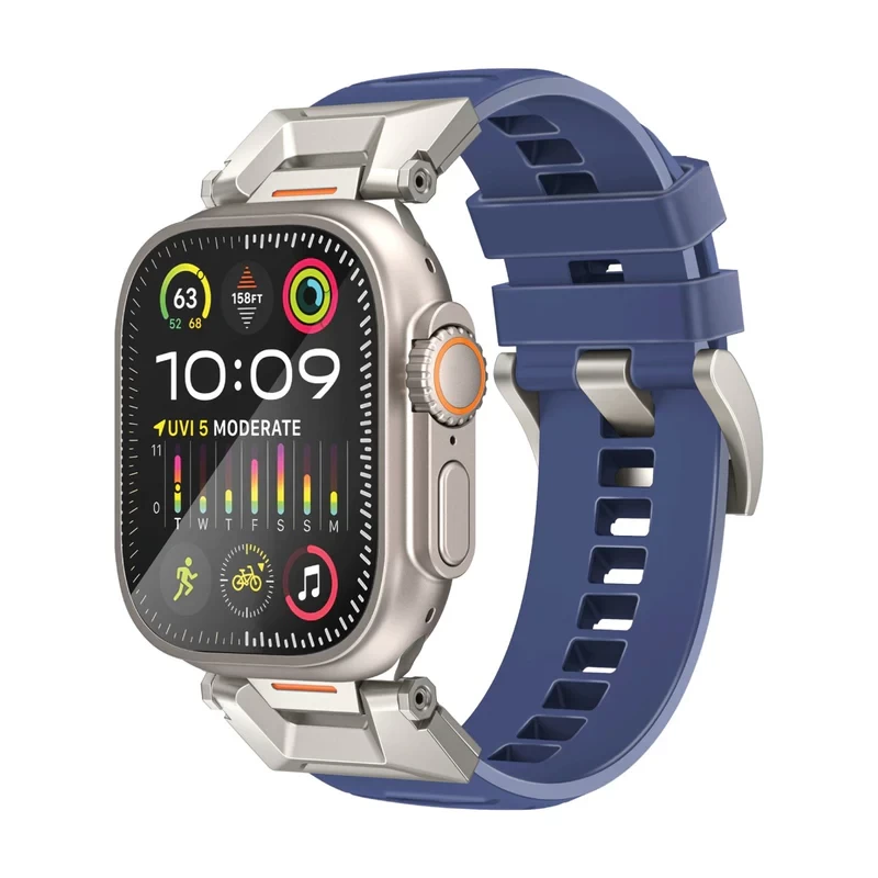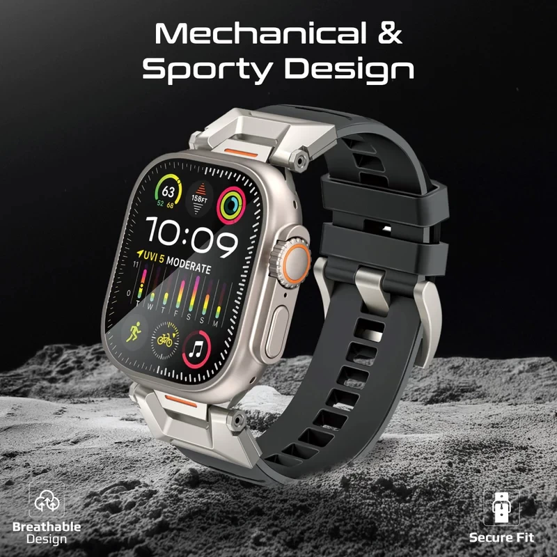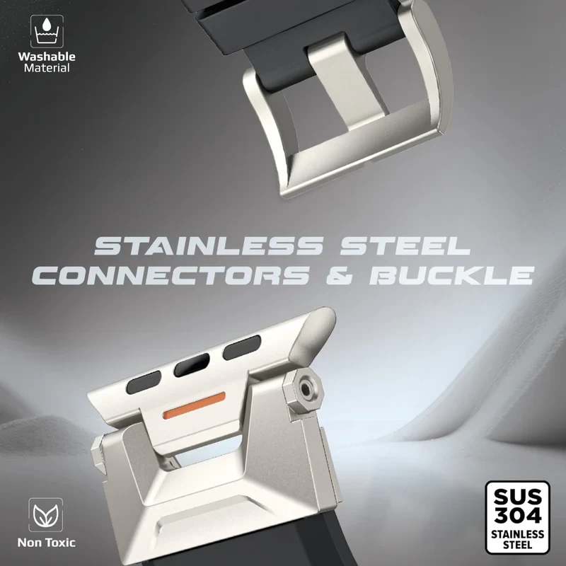 Step up your style game with Promate’s premium Apple Watch Band SilicaBand-Pro. The mecha-style and sporty design of this band transforms your watch into a mechanical masterpiece. The 304 stainless-steel connectors and buckle ensure durability and rust-free wear, even after long-term use. Compatible with all Apple Watch series and sizes (42/44/45mm/49mm), this band offers unparalleled versatility. The strap, made from wear-resistant and scratch-resistant FKM Fluoro-rubber, guarantees maximum longevity. Customize your comfort with the flexible multi-hole design, tailored to fit any wrist. Elevate your Apple Watch experience with Promate's innovative SilicaBand-Pro, combining style, durability, and flexibility in one sleek package.