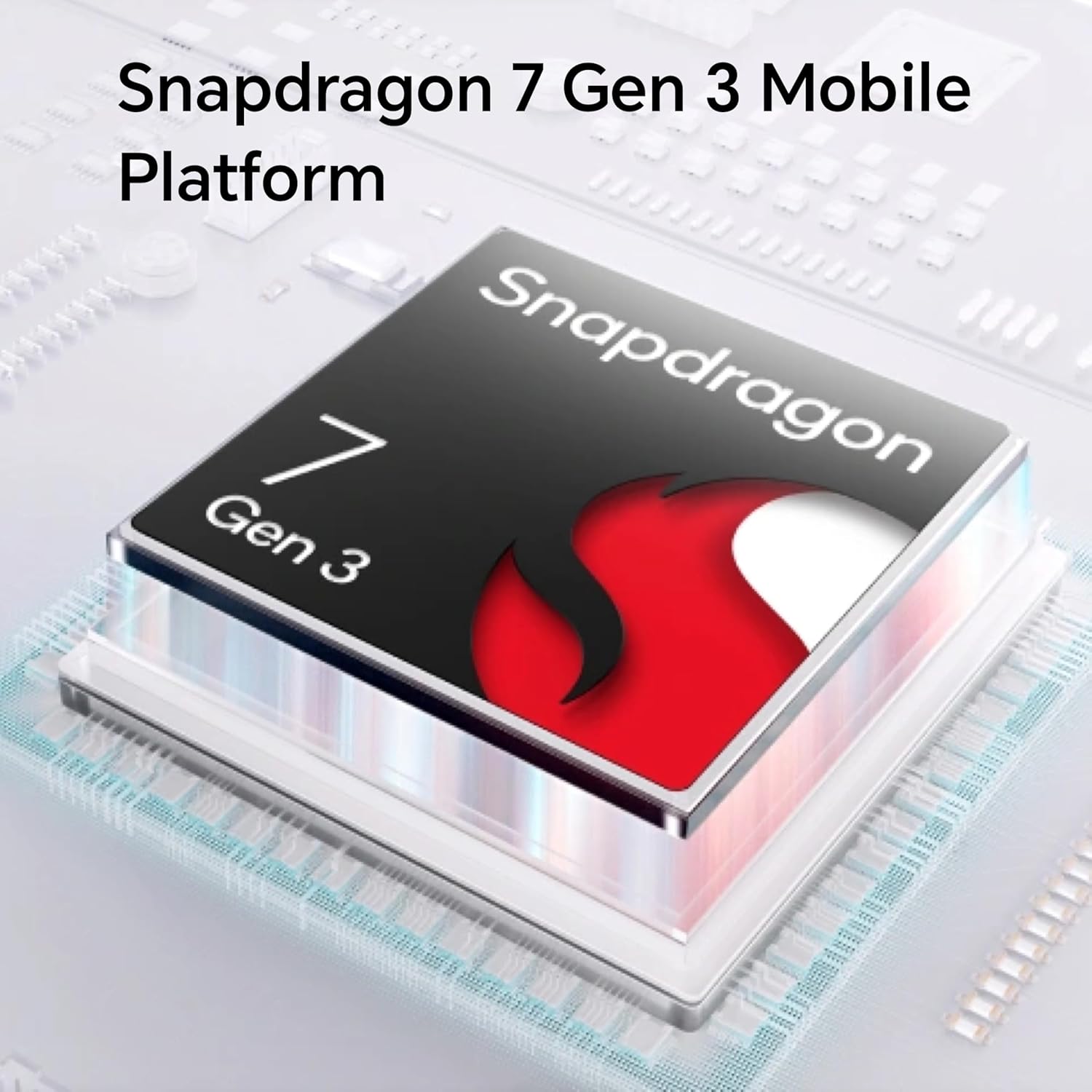 • [Snapdragon 7 Gen 3(4nm) Chipset] Benefit from peak efficiency and minimal power usage with the advanced 4nm process technology, delivering superior performance and next-level AI capabilities.