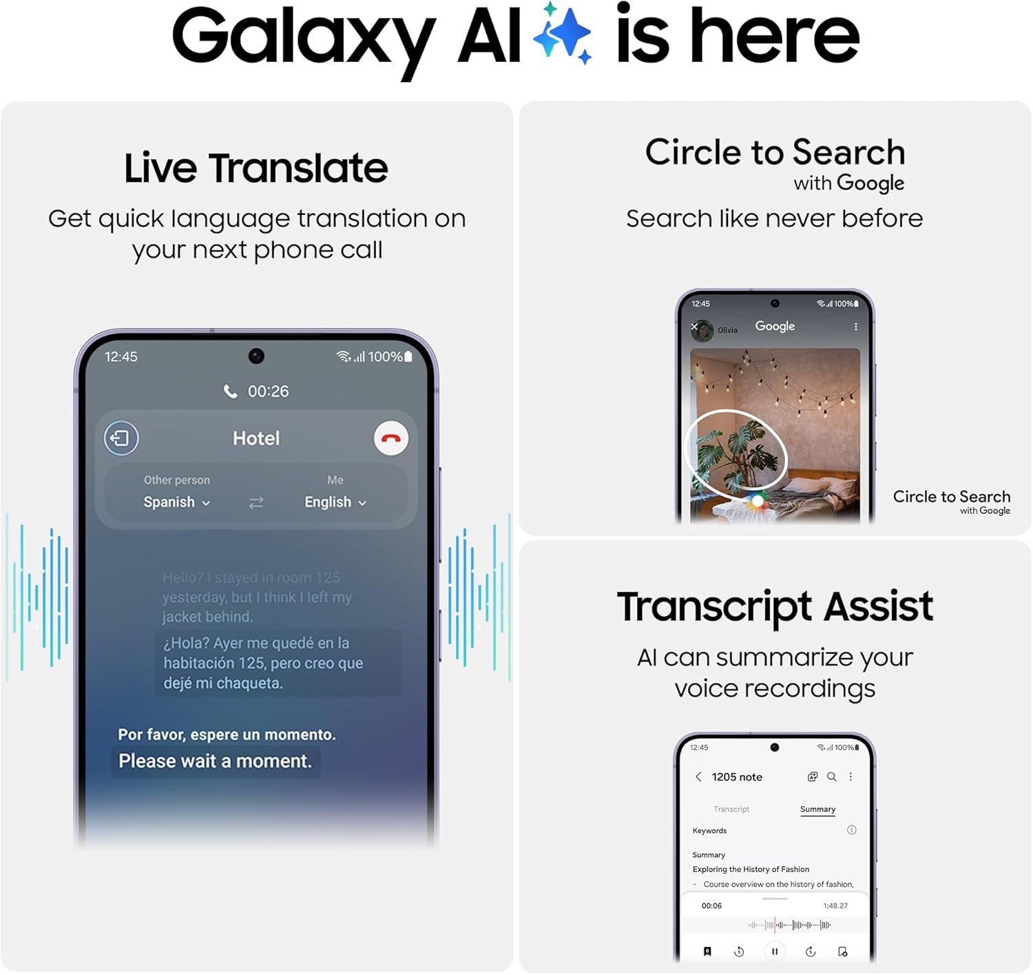 • AI Features: Search like never before, get real-time interpretation on a call, format your notes into a clear summary and effortlessly edit your photos-all from your smartphone, all with AI.